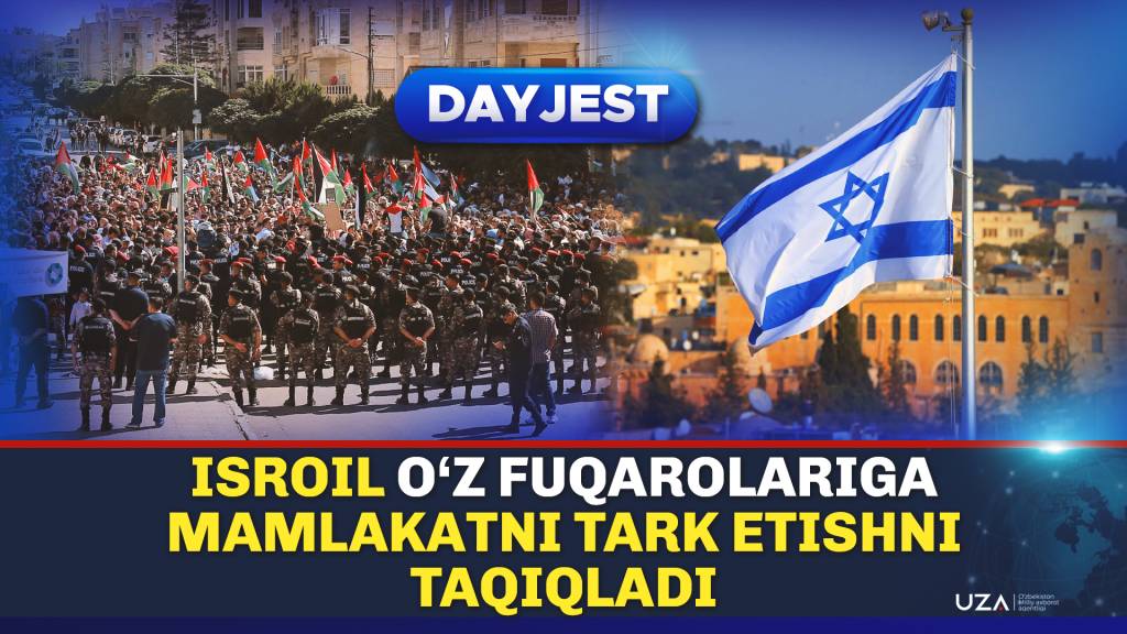 <iframe width="650" height="420" src="https://www.youtube.com/embed/WYuf5A8SbWg" title="Isroil o‘z fuqarolariga mamlakatni tark etishni taqiqladi" frameborder="0" allow="accelerometer; autoplay; clipboard-write; encrypted-media; gyroscope; picture-in-picture; web-share" referrerpolicy="strict-origin-when-cross-origin" allowfullscreen></iframe>Ирода Жўраева, Улуғбек Тўхтаев, ЎзА