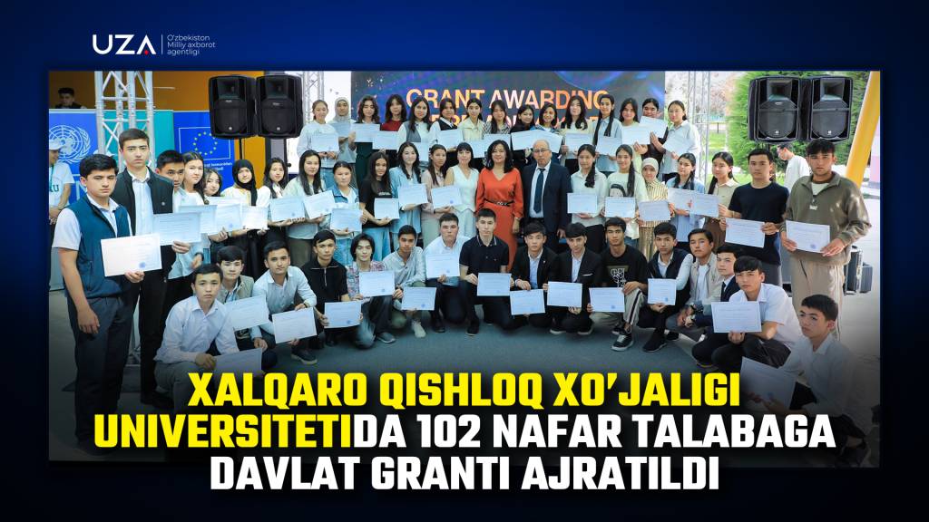 Ўзбекистонда қишлоқ хўжалигини ривожлантиришга қаратилган яна бир қадам: 2025-2026 ўқув йили учун ажратилган 200 та давлат грантидан 102 таси ўз эгаларига топширилди. Халқаро қишлоқ хўжалиги университети томонидан ўтказилган биринчи имтиҳон натижаларига кўра 102 нафар ёш ва иқтидорли абитуриент давлат гранти асосида ўқиш ҳуқуқини қўлга киритишга муваффақ бўлди.