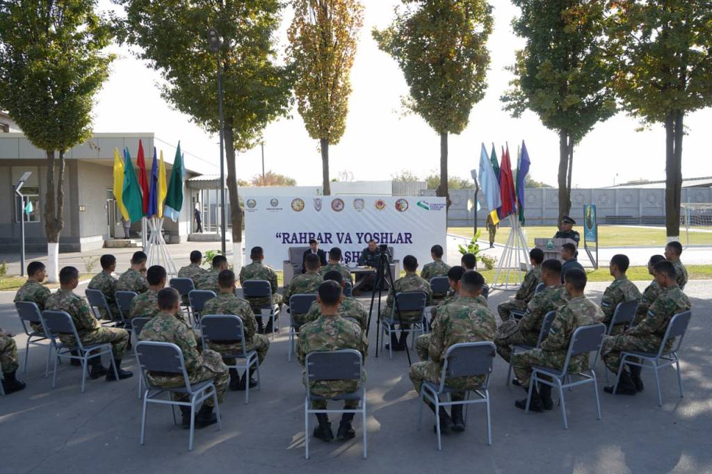 Ёшлар иттифоқи вакиллари томонидан иштирокчиларга республика ва вилоят даражасида амалга оширилаётган лойиҳалар, жумладан “Ёшлар дафтари”, “Ҳарбий хизматчиларнинг оила аъзоларини қўллаб-қувватлаш” каби дастурлар ҳақида атрофлича маълумот берилди. Учрашув якунида фаол иштирок этган бир гуруҳ ҳарбий хизматчилар ва ташаббускор ёшлар эсдалик совғалари билан тақдирланишди.