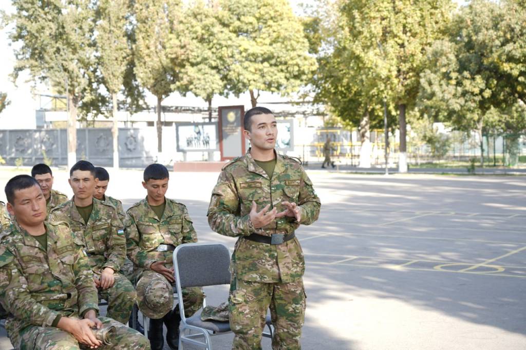 Суҳбат чоғида таълимни давом эттириш имкониятлари, ҳарбийлар учун мавжуд давлат грантлари ва имтиёзлар, бўш вақтни мазмунли ўтказиш, спорт ва маънавий-маърифий тадбирларда иштирок этиш масалалари муҳокама қилинди. Шунингдек, армия ва жамият ўртасидаги ижтимоий кўприкларни мустаҳкамлаш бўйича таклифлар илгари сурилди.