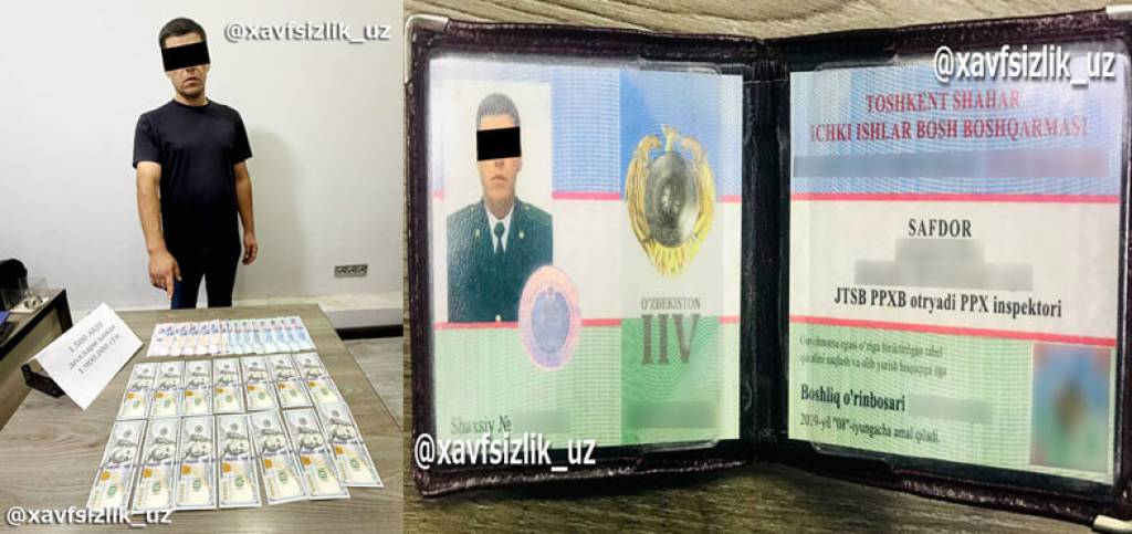 ДХХ Тошкент шаҳар бўйича бошқармаси ва Бош прокуратура ҳузуридаги Департамент ходимлари ҳамкорлигида Юнусобод туманида ўтказилган тезкор тадбирда инспектор 1500 АҚШ доллари ва кириш имтиҳони учун тўланиши лозим бўлган 1 млн 900 минг сўм пул маблағларини олган вақтида ашёвий далиллар билан ушланди.