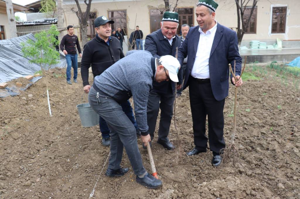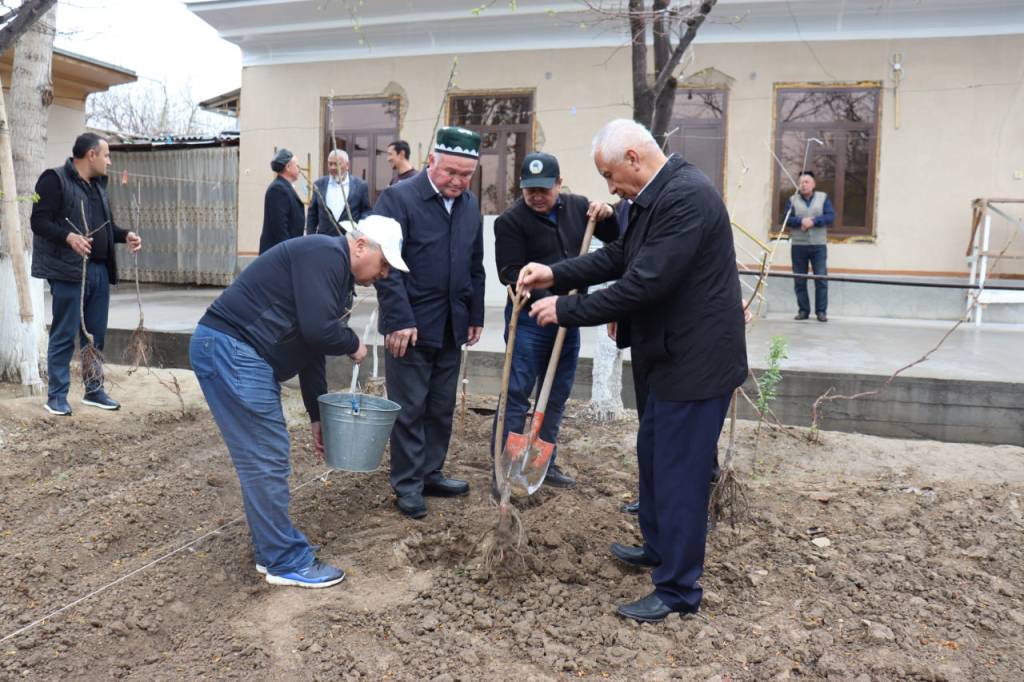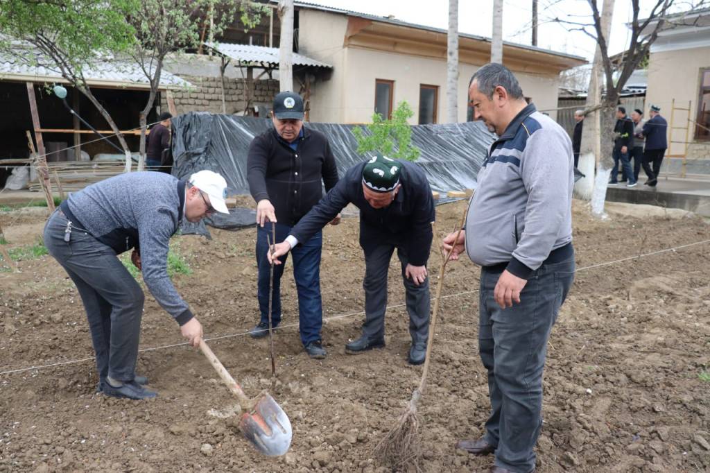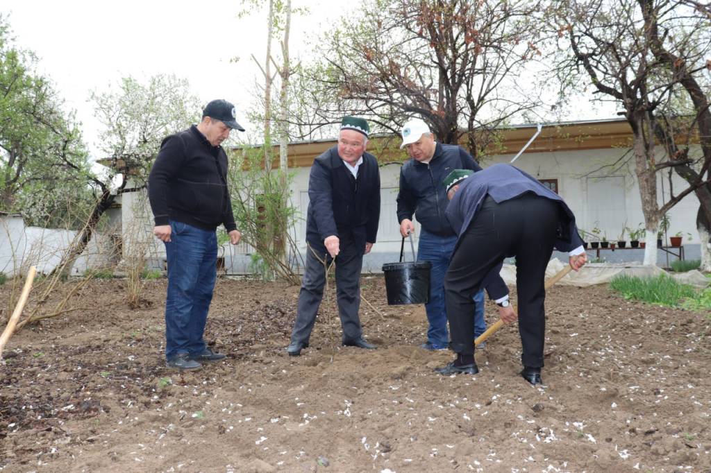 Тумандаги бир қатор оилаларга мевали кўчатлар ва мавсумий экин ниҳоллари тақдим қилиниб, уларнинг томорқасидаги бўш турган ер майдонларига ўтқазиш мақсадида ҳашар ташкил этилди. Эътиборлиси, кўчатлар ёши улуғ, ҳаётий тажрибаси бўлган кексалар ерга қадашди.