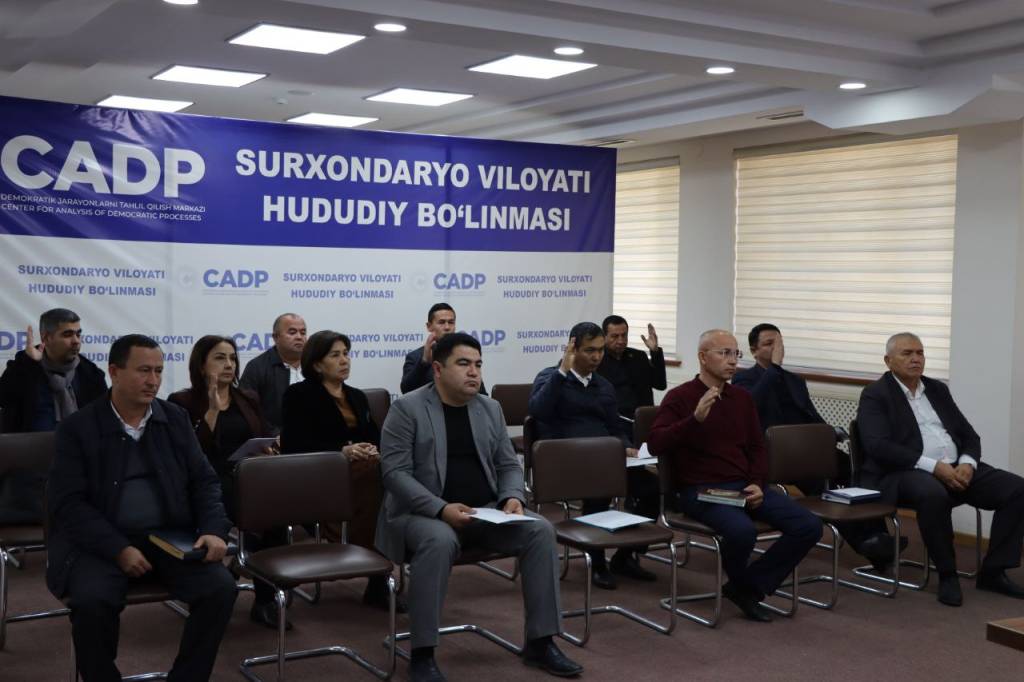 Маҳаллий Кенгашлар депутатларининг сифат таркибини, шу жумладан, бўшаб қолган ўринлар мавжудлигининг мониторинги олиб борилмоқда. Жумладан, 2025 йил 13 апрель куни Қизириқ, Денов, Шўрчи туманларида, 19 октябрда Музработ тумани ва Термиз шаҳрида бўшаб қолган ўринлар учун депутатлар сайлови ўтказилди. Маҳаллий Кенгашларининг бўшаб қолган депутатлик ўринларига сайлов жараёнида туман, шаҳар, участка сайлов комиссияси аъзоларининг сайлов қонунчилигига ва амалиёти бўйича малакаларини оширишга бағишланган ўқув-амалий семинарлар ташкил этилди.