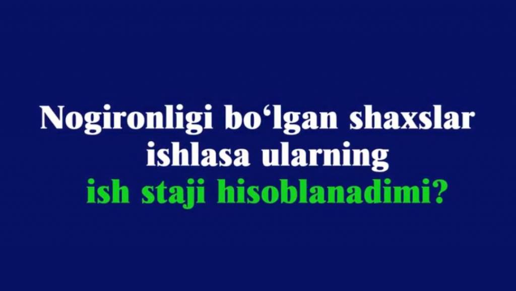<iframe width="1280" height="720" src="https://www.youtube.com/embed/dwmwMiDB_OA" title="Хушхабар! Энди ногиронлиги бўлган шахсларнинг иш стажи ва иш ҳақи ҳисобланади" frameborder="0" allow="accelerometer; autoplay; clipboard-write; encrypted-media; gyroscope; picture-in-picture" allowfullscreen></iframe>М.Эшмирзаева, Д.Якубов, ЎзА