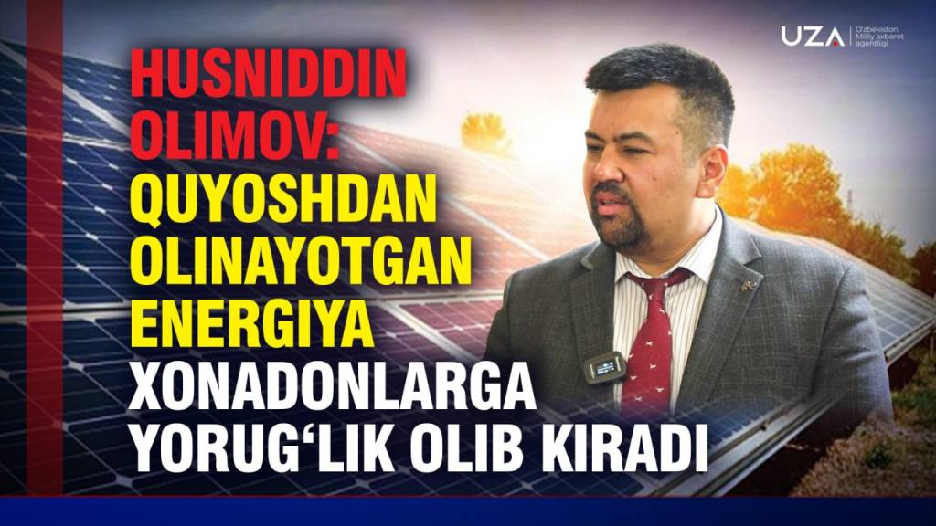 <iframe width="650" height="420" src="https://www.youtube.com/embed/sEFL6QCCtlo" title="Ҳусниддин Олимов: Қуёшдан олинаётган энергия хонадонларга ёруғлик олиб киради" frameborder="0" allow="accelerometer; autoplay; clipboard-write; encrypted-media; gyroscope; picture-in-picture; web-share" allowfullscreen></iframe>Мавзу юзасидан Фанлар академияси Физика-техника институти директори, Физика-математика фанлари доктори, профессор Ҳусниддин Олимов билан суҳбатлашдик.