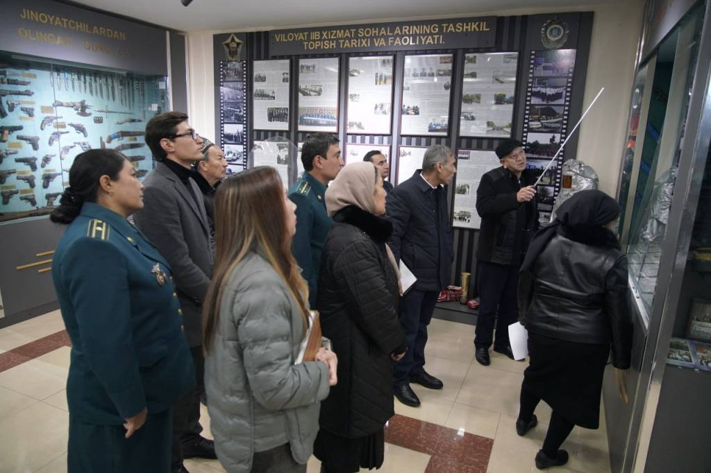 Тадбир қатнашчилари дастлаб вилоят ички ишлар бошқармасининг “Шон-шараф” музейида бўлиб, музей экспонатлари билан яқиндан танишди, тизим тарихига оид кенг маълумотлар олди.