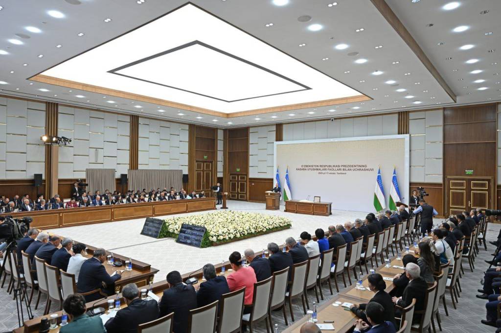 Президент Шавкат Мирзиёев касаба уюшмалари вакиллари билан учрашди. Айни пайтда давлатимиз раҳбари нутқ сўзлаб, соҳа вакиллари билан мулоқот қилмоқда.