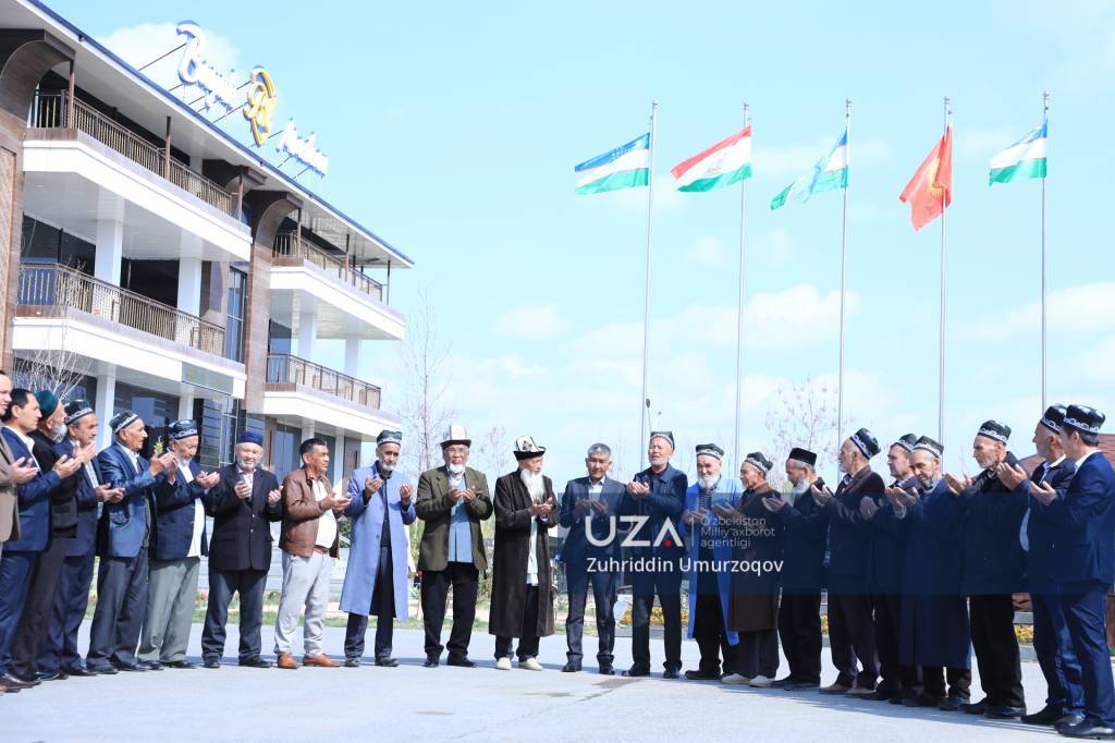 Байрам тадбирида қўйлар сўйилиб, дошқозонларда палов дамланди. Бир дастурхон атрофига йиғилганлар юртимизга тинчлик-тотувлик тилаб дуога қўл очдилар.
