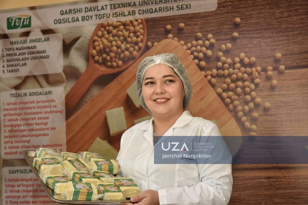 Эътиборлиси, ушбу маҳсулот соя донидан тайёрланади. Ва айнан ана шу маҳсулот билан боғлиқ илмий янгиликка юртимиздаги иқтидорли тадқиқотчи, Қарши давлат техника университети таянч докторанти Ситора Ҳодиева томонидан амалий ечим топилди. Бир неча йиллик тадқиқотлар, илмий изланишлар самараси ўлароқ, у соя донидан оқсилга бой, табиий ва фойдали тофу маҳсулотини тайёрлашга эришди.