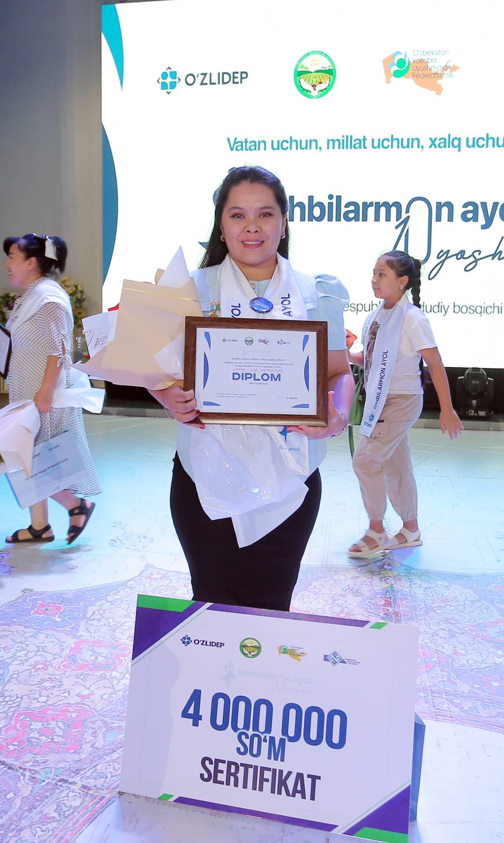 Шунингдек, “Замонавий ташаббускор аёл”, “Йилнинг мурувватли ишбилармон аёли”, “Инвестицияларни жалб қилишда ташаббус кўрсатган ишбилармон аёл”, “Энг ёш, фаол аёл тадбиркор”, “Қишлоқни ижтимоий ривожлантиришда фаоллик кўрсатган фермер аёл” каби номинацияларда бир қатор иштирокчилар тақдирланди.
