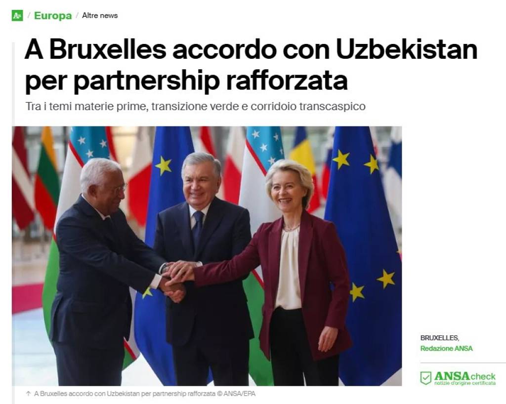 Италиянинг ANSA ахборот агентлиги давлатимиз раҳбарининг ташрифи хусусида эълон қилган мақолада мазкур ҳужжат 2024 йил апрель ойида Самарқандда бўлиб ўтган “Европа Иттифоқи – Марказий Осиё” саммитида эришилган келишувлар самараси сифатида ўзаро муносабатларни янги стратегик босқичга олиб чиқиши эътироф этилган.