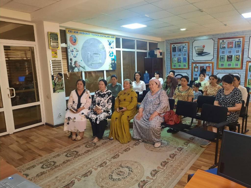 Тадбир сўнгида китобхон оналарга вилоят Ахборот-кутубхона марказига харид қилиб олиб келинган янги адабиётлар ҳақида маълумот берилди.