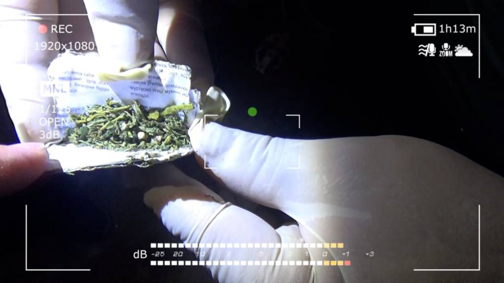 “Тошкент-Нукус” йўналишида ҳаракатланиб келаётган енгил автотранспорт воситаси тўхтатилиб, мазкур автотранспорт йўловчиси ва унга тегишли бўлган сумкалар холислар иштирокида кўздан кечирилганида, фуқаро устидаги ички кийимларига хуфиёна тарзда яширилган 2 дона шаффоф рангли полиетилен пакетда ўткир ҳидли, тўқ жигарранг, ўрами билан оғирлиги 58,12 грамм бўлган “гашиш” гиёҳвандлик воситаси борлиги аниқланди.