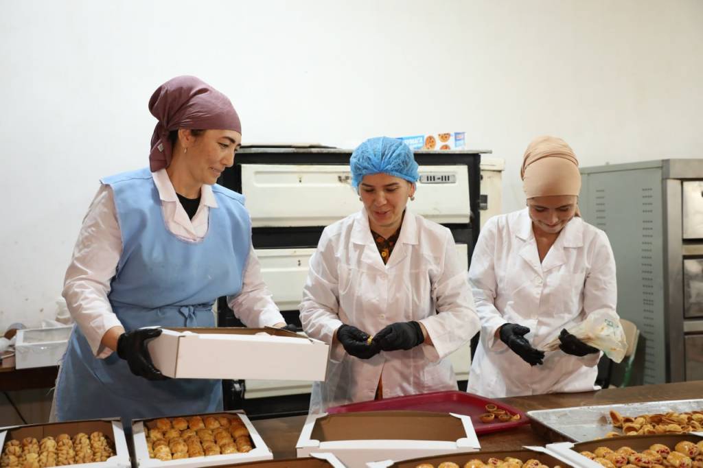 Дастлаб Амир Темур маҳалласидаги кичик эркин иқтисодий зонада меҳмонлар миллий қандолатчилик ва тикиш-тикув йўналишида иш бошлаган тадбиркорлар фаолияти билан яқиндан танишишди.