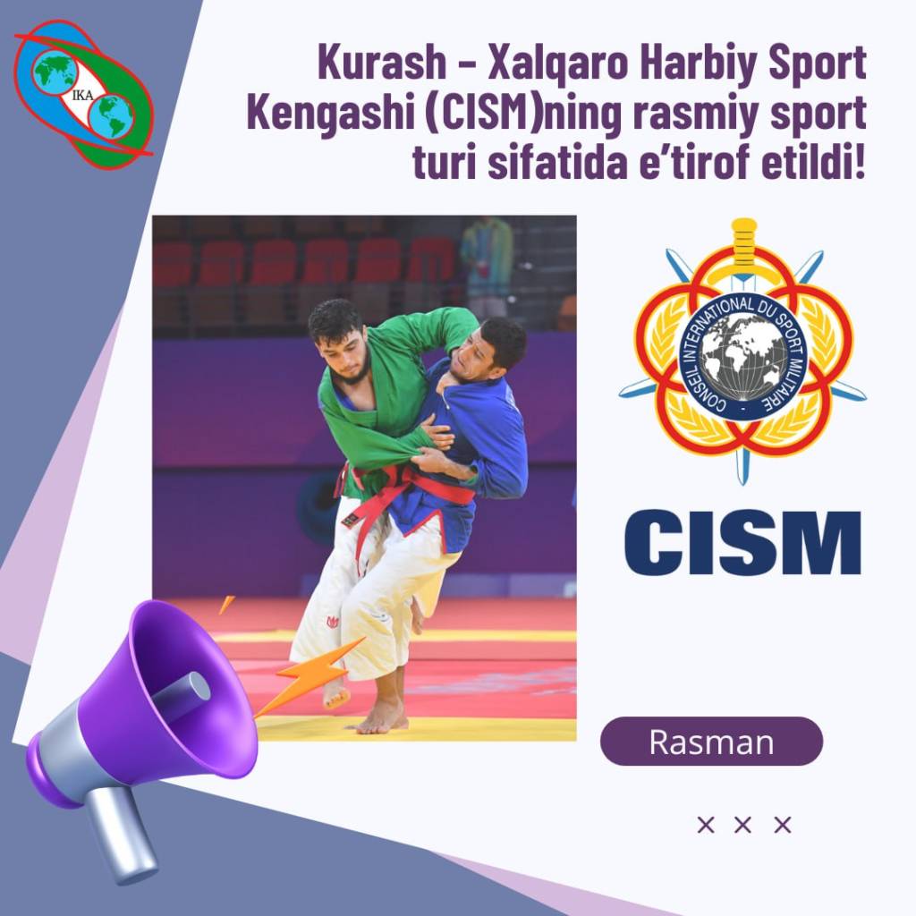 Халқаро ҳарбий спорт кенгаши (CISM) миллий спортимиз курашни ўз тақвимидан жой олган спорт тури сифатида эътироф этди. Бу муҳим қарор Шри-Ланканинг Коломбо шаҳрида бўлиб ўтган CISM Бош Ассамблеясида эълон қилинди.