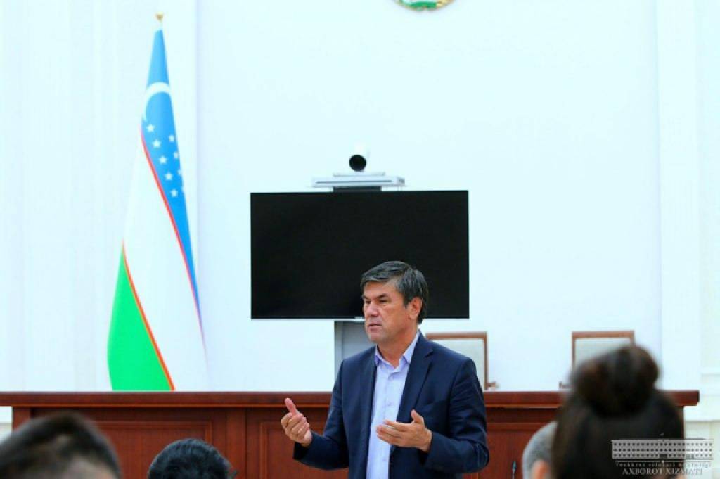 Тошкент вилояти ҳокими Рустам Холматов маънавият-маърифат соҳаси масъуллари, маҳаллий бошқарув идоралари раҳбарларининг маънавий-маърифий ишлар самарадорлигини ошириш, давлат тили тўғрисидаги қонун ҳужжатларига риоя этилишини таъминлаш масалалари бўйича маслаҳатчилари билан очиқ мулоқот ўтказди.