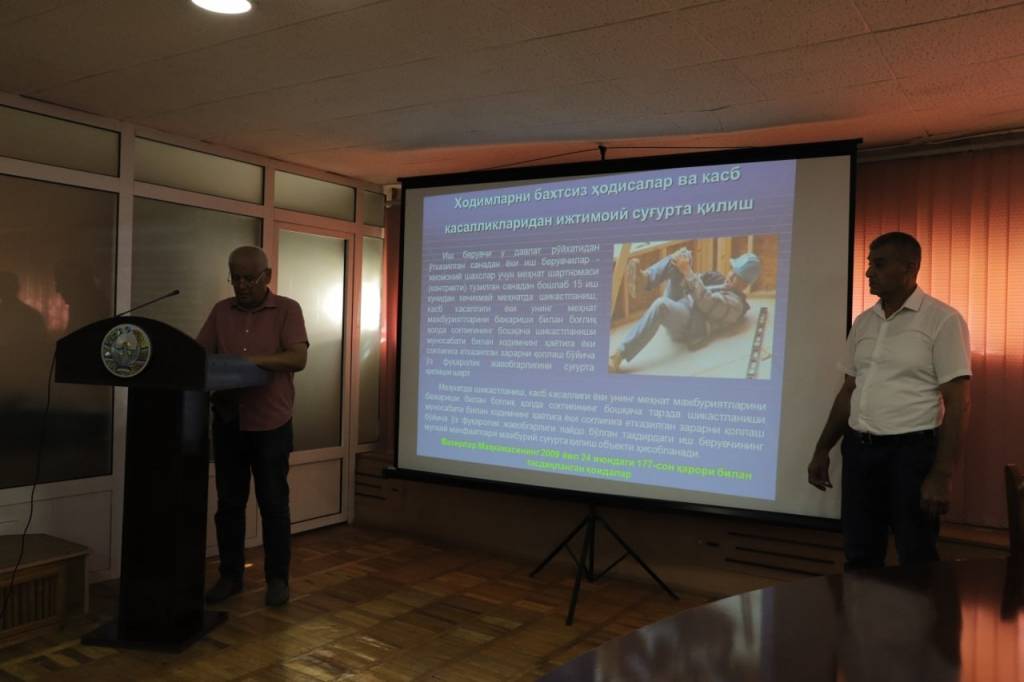 Айнан шу мақсадда Ўзбекистон Республикаси Санитария-эпидемиологик осойишталик ва жамоат саломатлиги хизмати раҳбар ва ишчи-ходимларининг меҳнатни муҳофаза қилиш бўйича малакасини ошириш юзасидан режа асосида ўқув машғулотлари олиб борилди.