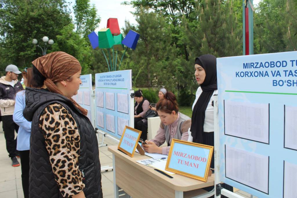 Аҳолининг иш билан банд бўлмаган қатламини корхона, ташкилот ва муассасалардаги бўш иш ўринлари ва хизмат лавозимларига ишга жойлаштириш ҳамда меҳнат бозоридаги талаб юқори бўлган касбларга ўқитиш мақсадида Гулистон шаҳридаги истироҳат боғида вилоят ҳокимлиги, прокуратура, Ички ишлар, Камбағалликни қисқартириш ва бандлик бошқармалари ҳамкорлигида “Меҳнат ярмаркаси” ташкил этилди. Унда вилоятдаги 972 та давлат ташкилоти ўзларидаги мавжуд 4 301 та бўш лавозим (415 таси халқ таълими, 288 таси соғлиқни сақлаш ва 3 598 таси бошқа йўналишлар) ҳамда 60 тадбиркорлик суъбектидаги 4 419 бўш иш ўрни (қурилиш йўналишида 887 та, текстил корхоналарида 2770 та ва 762 та хизмат кўрсатишда) тақдим этилди.