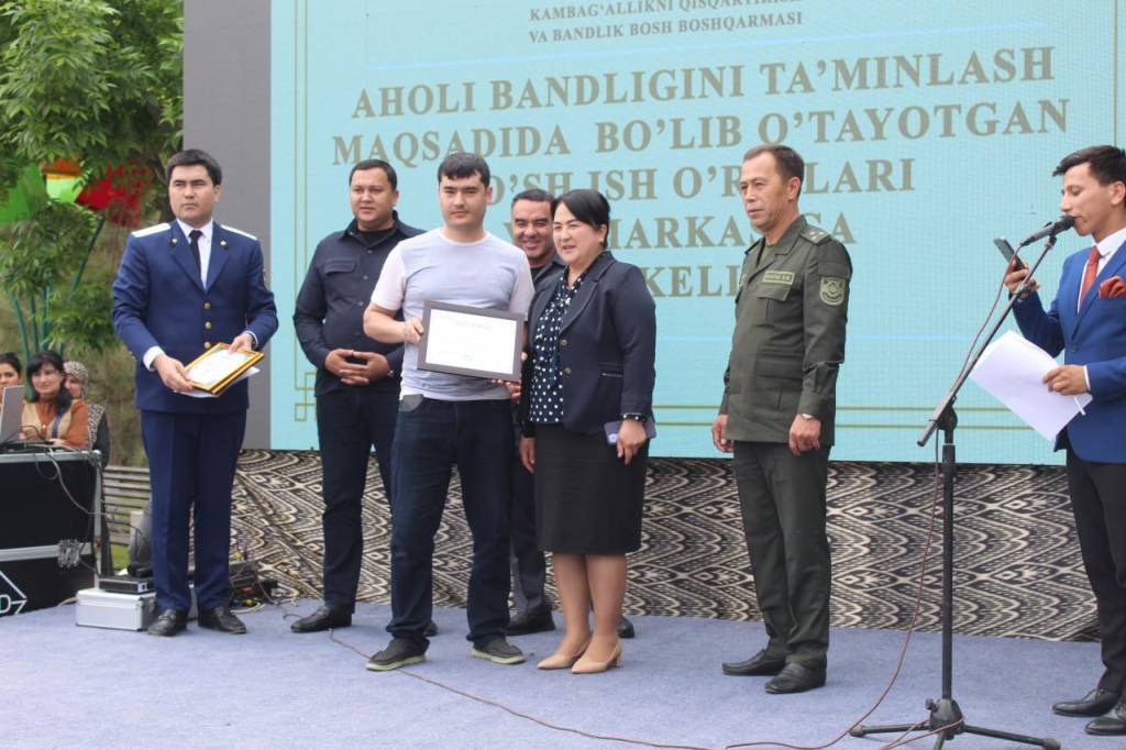 Тадбирда ташкилотчилар томонидан энг кўп иш ўрни яратиб, аҳоли бандлигини таъминлаётган иш берувчиларга ташаккурнома ва эсдалик совғалари, бир гуруҳ ёшларга ўзини ўзи банд қилишлари учун зарур маиший техника ва асбоб-ускуналар берилди. Шунингдек, тадбиркорликни йўлга қўйишга кредит сўраб, мурожаат қилган фуқароларга сертификат ҳамда Гулистон “Ишга марҳамат” мономаркази битирувчиларига дипломлар тантанали равишда топширилди.