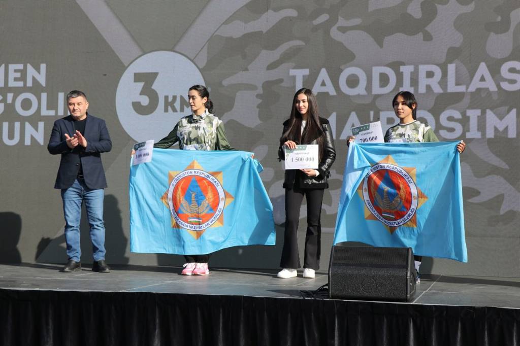 Жумладан, 3 километрлик югуриш мусобақасига ҳарбий хизматчилар ва ҳуқуқни муҳофаза қилувчи идоралар вакилларининг оилалари, шу жумладан катта-кичик авлод фарзандлари ҳам қўшилди. Ушбу масофадаги баҳсларда Элдор Ботиров ва Азиза Мирзаакбарова ғолиб деб топилди.