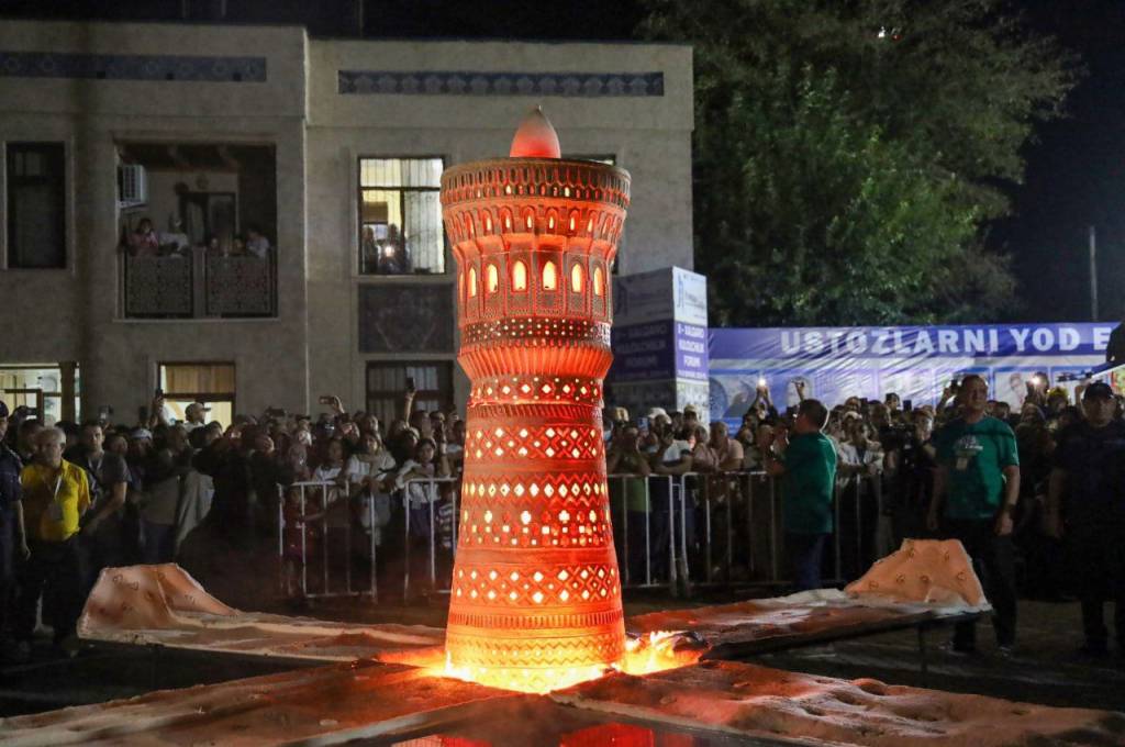 Риштон туманида бўлиб ўтаётган II халқаро кулолчилик форуми доирасида Ўзбекистон, Россия, Қирғизистон, Тожикистон ҳунармандлари ҳамкорлигида Бухоронинг “Минораи Калон” меъморий обидаси кўринишида кулолчилик маҳсулоти яратилиб, оловли катта шоу уюштирилди.