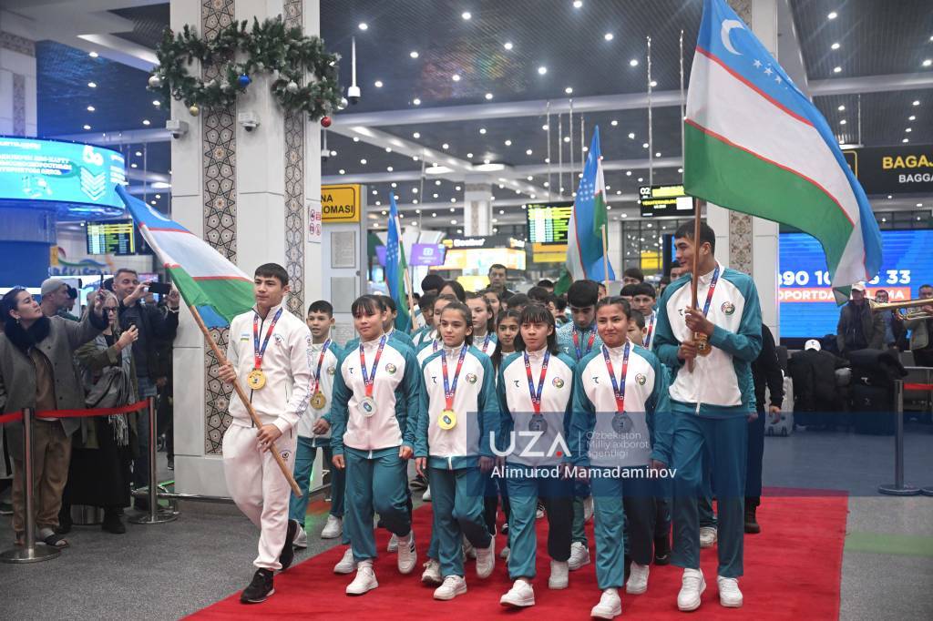 Маросимда ҳарбий оркестр, мамлакат кураш федерацияси масъуллари, кураш фидойилари, ота-оналар, оммавий ахборот воситалари ходимлари кутиб олдилар.