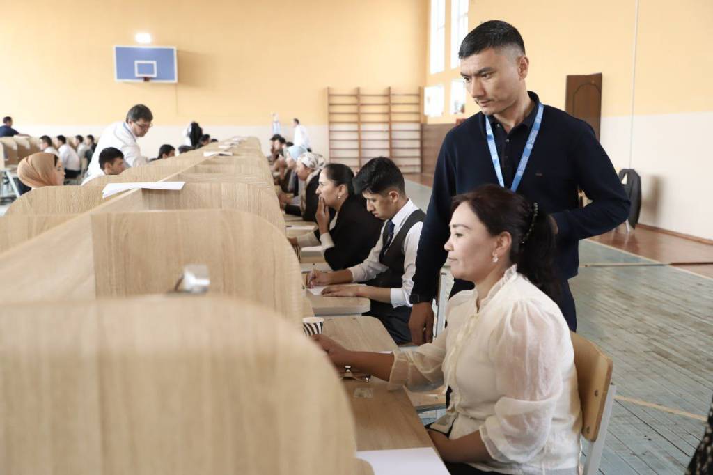 Мазкур жараён вилоятда юқори ташкилий тайёргарлик ва кўтаринки руҳда бошланиб, Наманган шаҳридаги 15-сонли умумтаълим мактабининг спорт залида ҳозирланган 150 ўринли жойда дастлабки имтиҳонда 600 нафар рус тили ва география фани ўқитувчиси иштирок этмоқда.