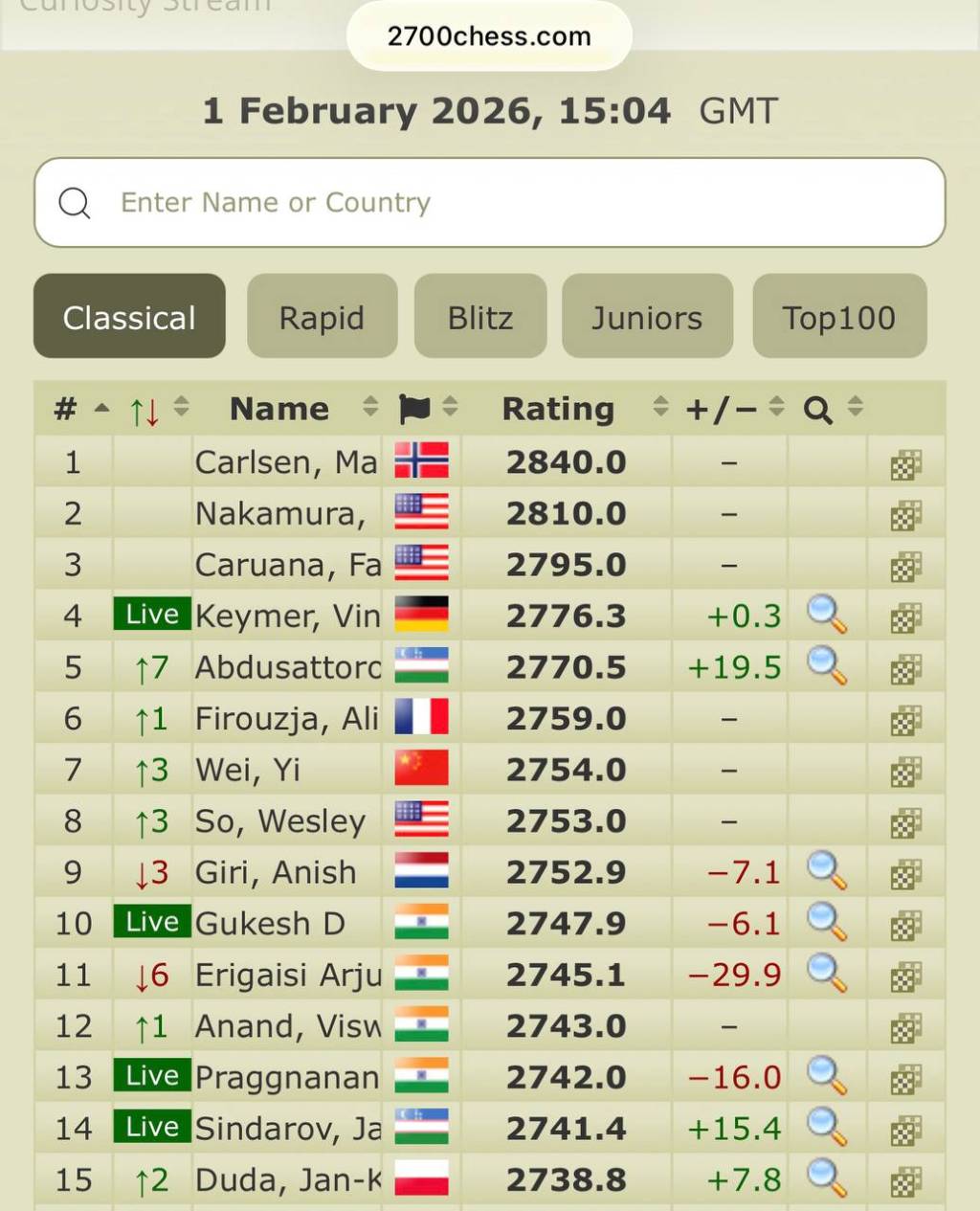 Эслатиб ўтамиз, Абдусатторов, “Tata Steel Chess” турнирининг 2023 йилги мусобақасида 2-ўринни, 2024 ва 2025 йиллари эса 3-поғонани банд этганди.