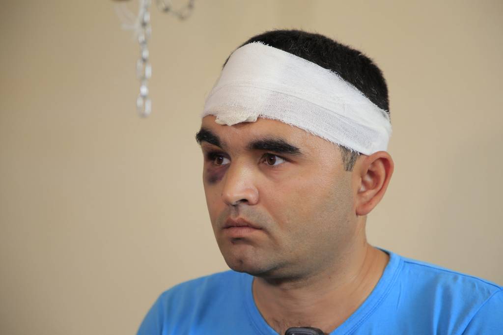Намойишчилар Миллий гвардия ходимларига, ҳаммамизга тош отишди. Оёғимдан яраландим. Жароҳат олганимдан кейин мени ўзимизни йигитлар шифохонага олиб боришди.