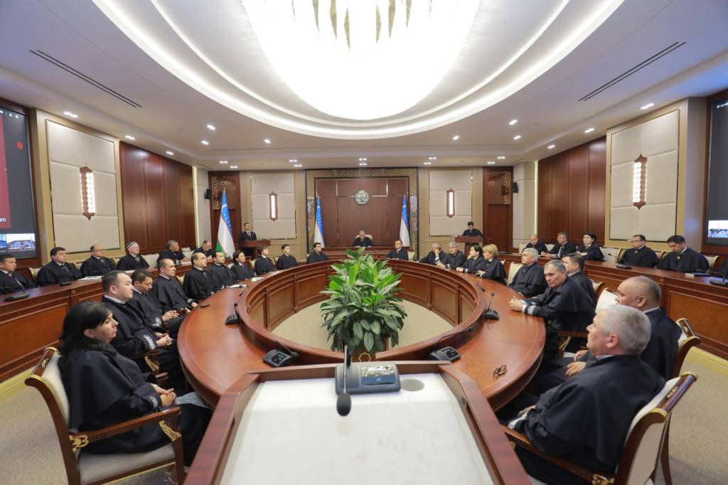 Олий суд пленумининг мажлисида айрим фуқаролик ва жиноят ишлари бўйича туманлараро, туман, шаҳар ҳамда туманлараро иқтисодий ва маъмурий судларга илк бор судьялик лавозимига тайинланган судьяларнинг қасамёд қабул қилиш маросими ўтказилди.