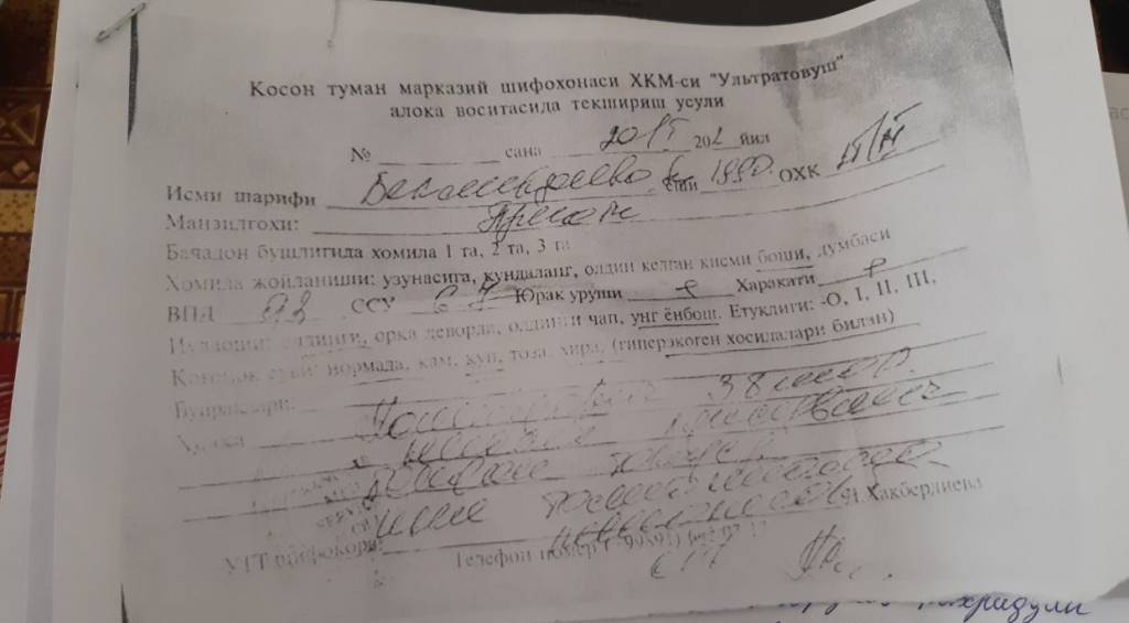 Ҳақиқатда унинг қўлидаги ўша куни марҳума тушган УЗИ қоғозининг нусхаси бор экан ва биз ҳам кўрдик. Қоғозда боланинг юрак уришлари, ҳолати ҳақида маълумотлар қайд этилган эди. Суриштирувни эса шу ерда якунладик. Бу билан ҳеч кимни айбламоқчи эмасмиз. Инсон борки хато қилади. Аммо баъзи арзимаган хатоларимиз, инсоннинг ўлимига сабабчи бўлса, уни кечириш қийин. Хулоса ўзингиздан.