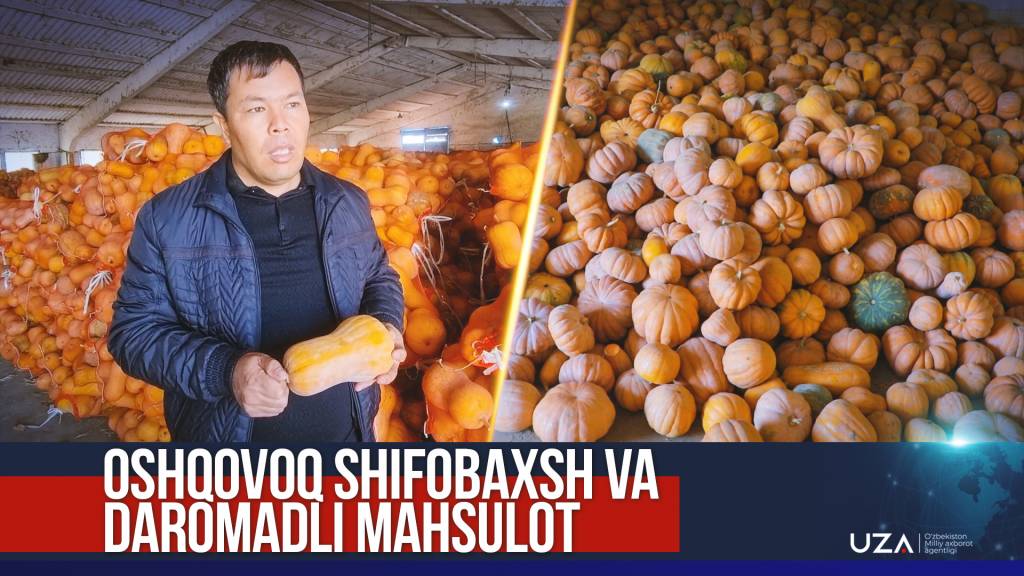 <iframe width="650" height="420" src="https://www.youtube.com/embed/dVk0BuLcSGE" title="Oshqovoq shifobaxsh va daromadli mahsulot" frameborder="0" allow="accelerometer; autoplay; clipboard-write; encrypted-media; gyroscope; picture-in-picture; web-share" referrerpolicy="strict-origin-when-cross-origin" allowfullscreen></iframe>Санжар Тошпўлатов, Улуғбек Тўхтаев, ЎзА
