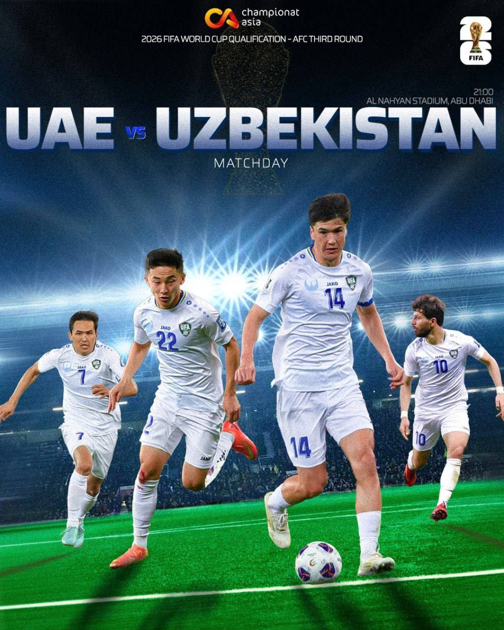 Айнан бугун гуруҳда 2-ўринда бораётган Ўзбекистон миллий терма жамоаси қайсидир маънода мундиал йўлланмасини қўлга киритиши мумкин. Лекин рақибимиз БАА ҳам ҳали иккинчи йўлланмадан умидини узмаган.