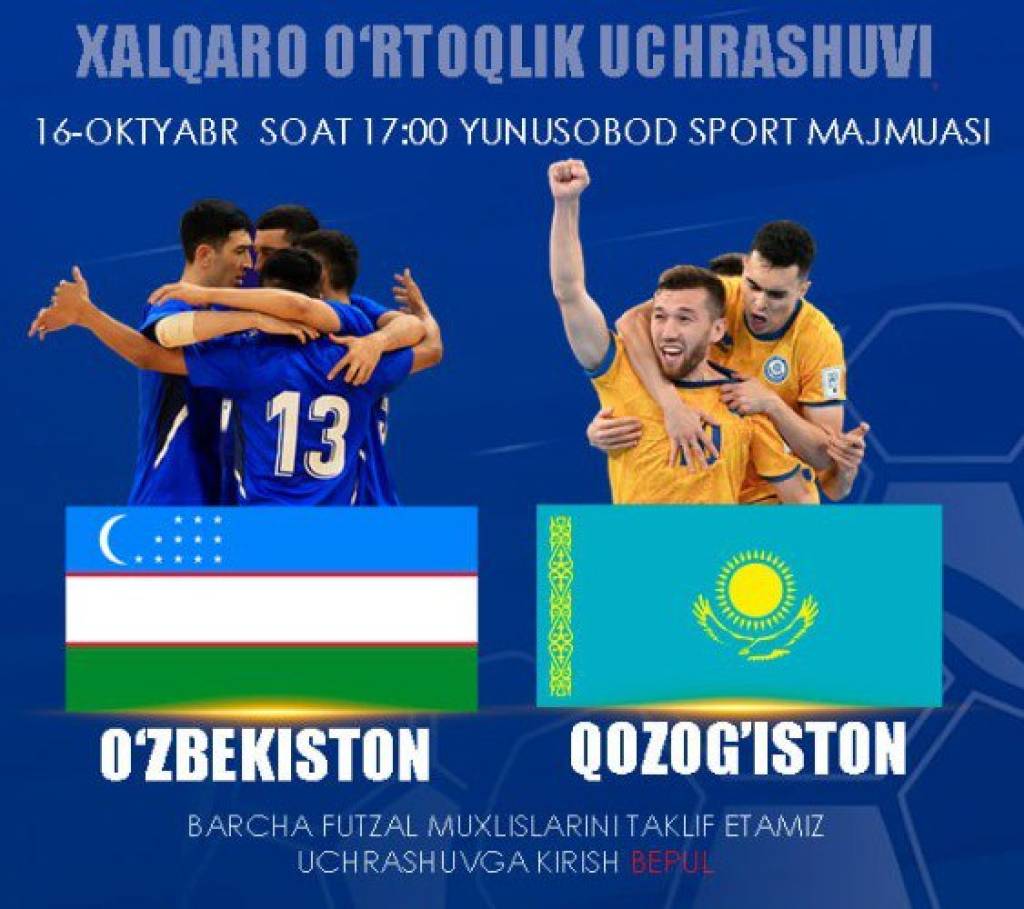 Бугун, 16 октябрь куни VI "Ислом бирдамлиги" ўйинларига тайёргарлик кўраётган Ўзбекистон футзал терма жамоаси Тошкентдаги “Юнусобод” спорт мажмуасида Қозоғистон терма жамоаси билан ўртоқлик ўйинида майдонга тушади.