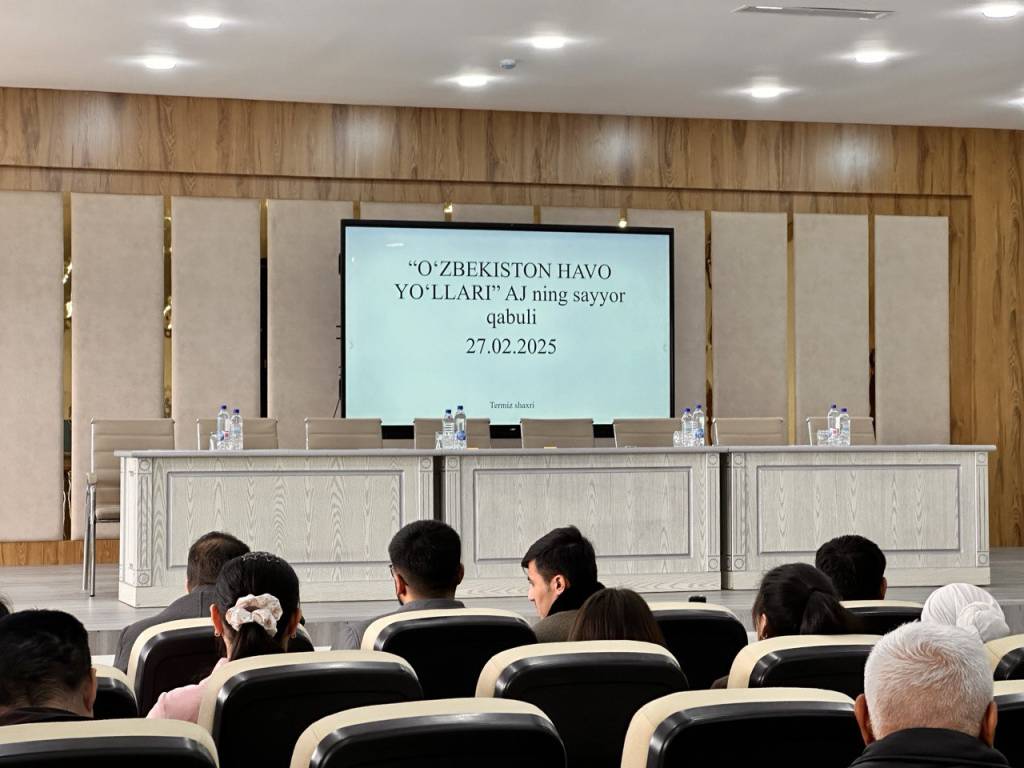 Сурхондарё вилоятидаги Термиз иқтисодиёт ва сервис университетида “O‘zbekiston havo yo‘llari” акциядорлик жамияти раҳбарияти ҳамда авиакомпания таркибий бўлинмалари мутасаддилари сайёр қабул ўтказди.