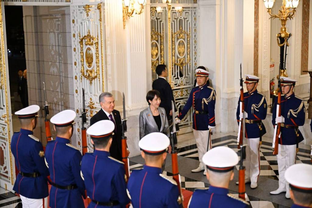Токиога ташрифнинг биринчи куни якунида Ўзбекистон Республикаси Президенти Шавкат Мирзиёев Акасака саройида  Япония Бош вазири номидан Марказий Осиё давлатлари раҳбарлари шарафига ўтказилган расмий қабул маросимида иштирок этди.