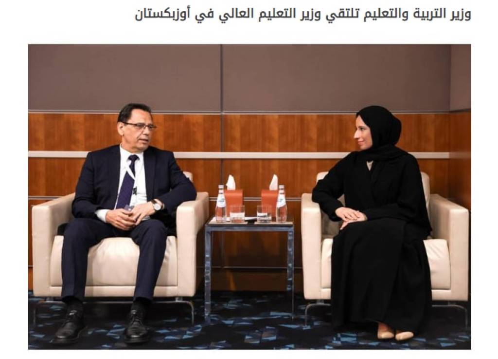 QNA Доҳа шаҳрида Ўзбекистон Республикаси олий таълим, фан ва инновациялар вазири Қўнғиротбой Шарипов Қатар давлати таълим вазири Бусаина бинт Али Ал-Жабр Ан-Нуаймий билан учрашгани ҳақида мақола эълон қилди.