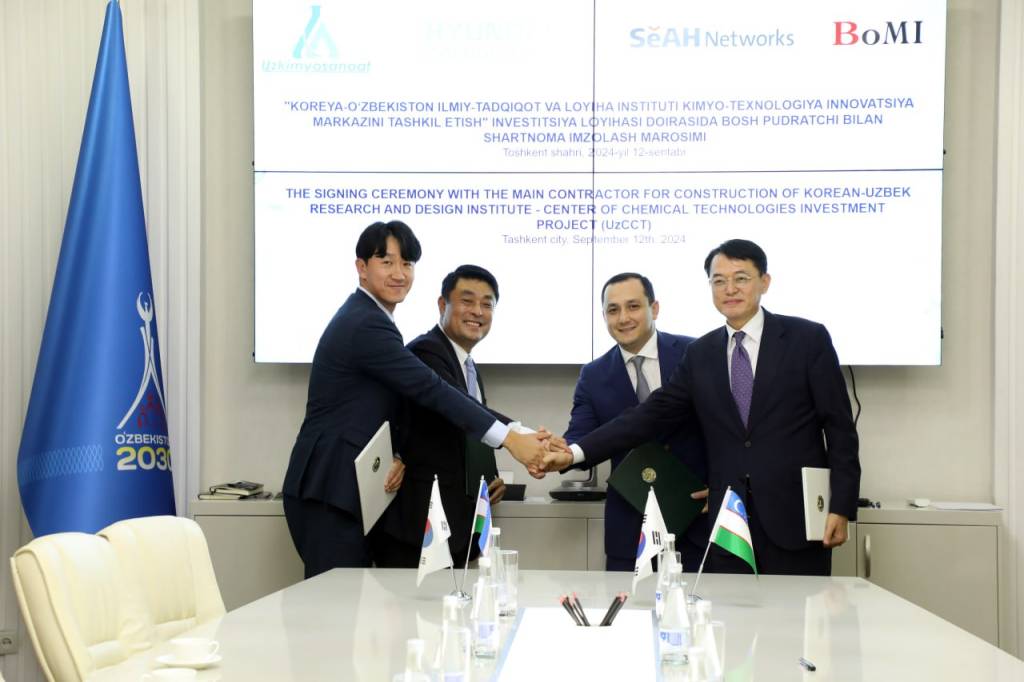 Тадбирда «Ўзкимёсаноат» АЖ ва «Hyundai Corporation» таркибидаги Hyundai», «Bomi», «SeAH» » компаниялари ўртасида тўрт томонлама шартнома имзоланди. Унга кўра, «Корея – Ўзбекистон» илмий-тадқиқот ва лойиҳа институти кимё-технология инновация маркази» лойиҳасини татбиқ этишда ушбу компаниялар иштирок этади.