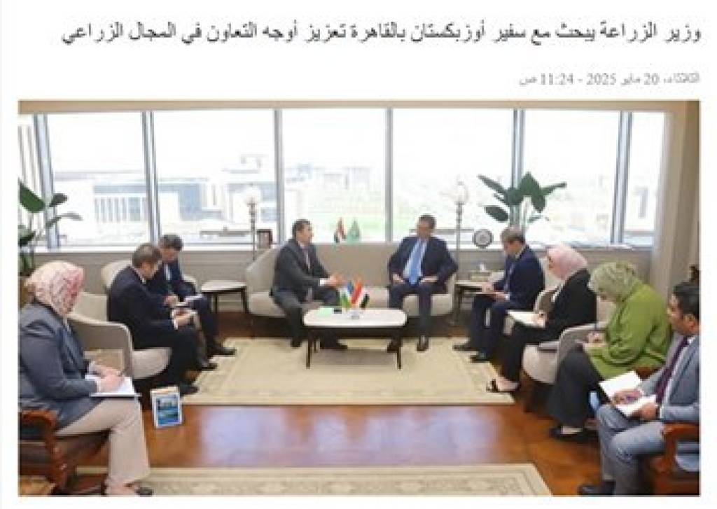 Миср Араб Республикасининг “Еттинчи кун” ва бошқа нашрлари мамлакат қишлоқ хўжалиги вазири Ўзбекистоннинг Қоҳирадаги элчиси билан учрашганини ёритди.
