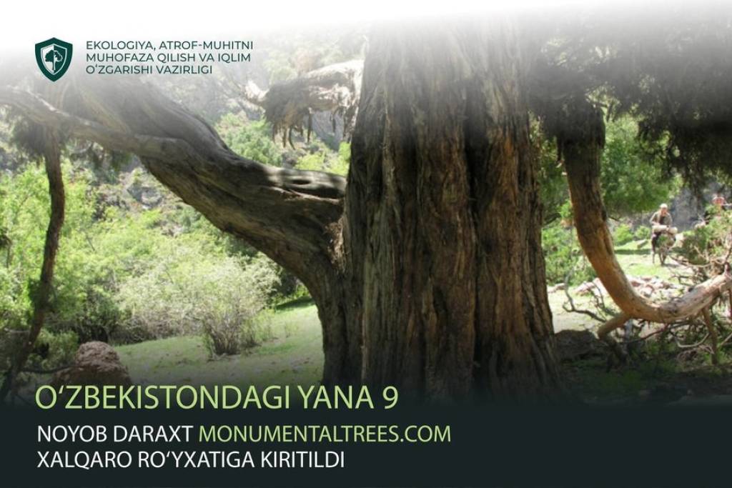 Экология, атроф-муҳитни муҳофаза қилиш ва иқлим ўзгариши вазирлиги матбуот хизматининг маълум қилишича, яна 9 та ноёб дарахтнинг номзодномалари тайёрланди ва улар "MonumentalTress.com" халқаро рўйхатига номзод этиб киритилди.