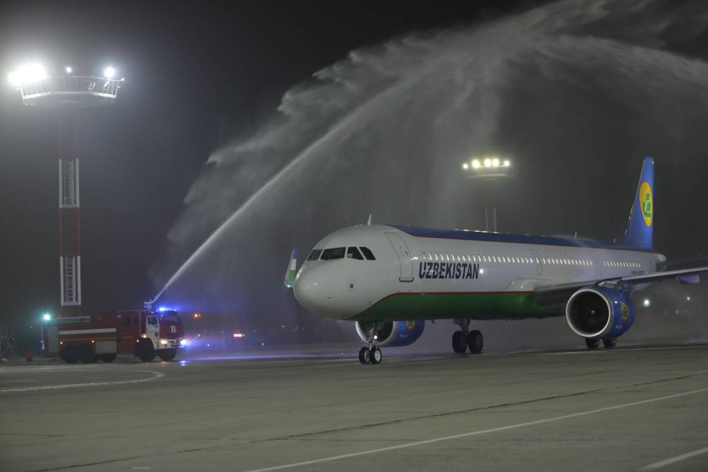 Кеча "Uzbekistan Airways" томонидан харид қилинган тўртинчи Airbus 321neo самолёти “Тошкент” аэропортининг маҳаллий авиайўналишлар терминалига келиб қўнди. Aвиация анъаналарига мувофиқ, янги ҳаво кемаси ўт ўчириш машиналари ёрдамида сув аркаси билан кутиб олинди.