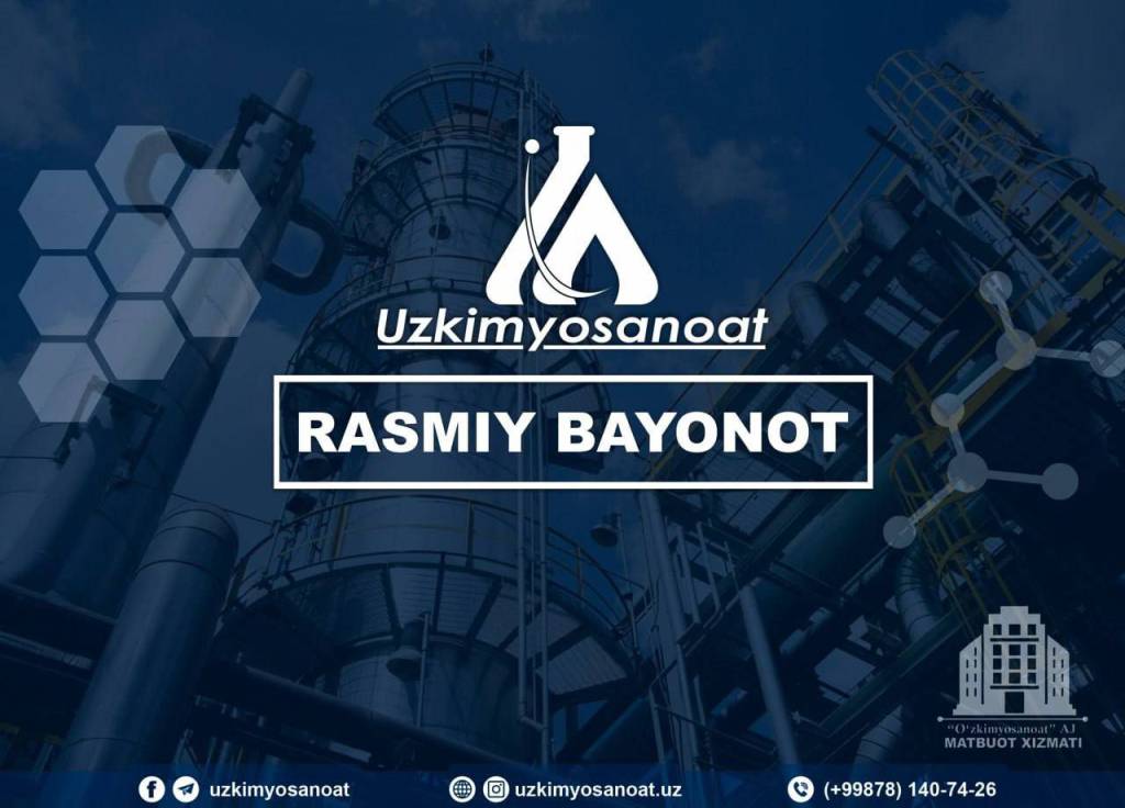 Мазкур ҳолат юзасидан "Ўзкимёсаноат” АЖ ахборот хизмати қуйидагиларни маълум қилди: