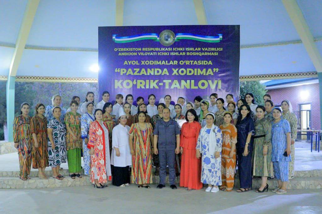 Мамлакатимизда хотин-қизларнинг ижтимоий фаоллигини ошириш, уларни ҳар томонлама қўллаб-қувватлаш, Ватан тараққиёти ва жамият ҳаётидаги иштироки, ўрни ва ролини ошириш борасидаги ишлар давлатимиз сиёсатининг устувор йўналишларидан бирига айланган. Хусусан, Андижон вилояти ички ишлар бошқармаси ташаббуси билан ички ишлар органлари аёл ходималари ўртасида ўтказилган “Пазанда ходима” кўрик-танлови ҳам ана шу йўналишдаги ишлардан биридир.
