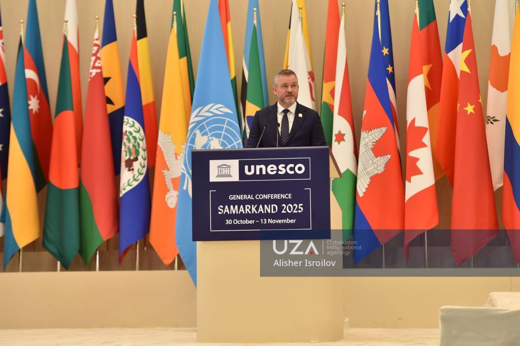 Самарқанд шаҳрида ЮНЕСКО Бош конференциясининг 43-сессияси тадбирлари давом этмоқда. Бугун ўтказилган навбатдаги ялпи мажлисда юртимизда амалий ташриф билан бўлиб турган Словакия Республикаси Президенти Петер Пеллегрини сўзга чиқди.