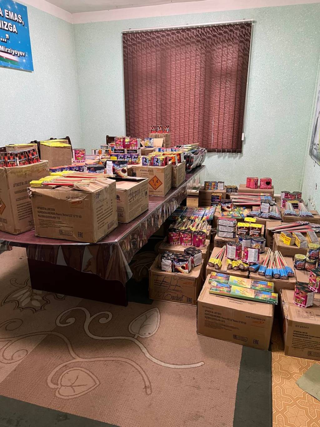 Ўрганишлар давомида умумий баҳоси 98 миллион 556 сўм бўлган жами 1 минг 586 дона пиротехника воситалари хатловдан ўтказилди. Аниқланган ҳолатга қонуний қарор қабул қилинганга қадар вақтинчалик олиб қўйилди. Шунингдек, рейдлар давомида мутахассислар томонидан ноқонуний фаолиятни олдини олиш мақсадида тадбиркорлар билан тушунтириш-тарғибот ишлари олиб борилмоқда.