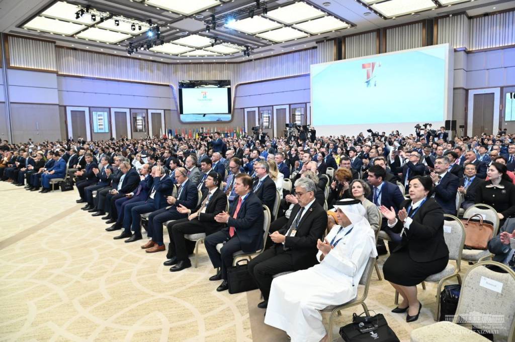 Халқаро конгресс марказида иккинчи Тошкент халқаро инвестиция форуми бошланди. Унинг ялпи мажлисида Президент Шавкат Мирзиёев нутқ сўзламоқда.