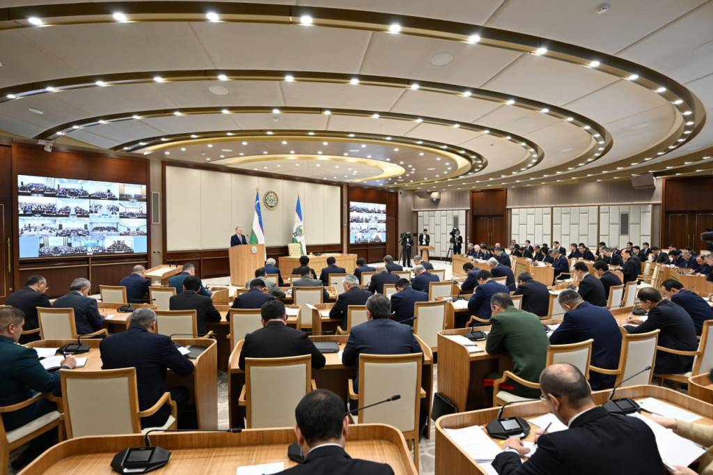 Амалга оширилаётган ислоҳотлар натижадорлиги, ҳудудларда ишларнинг бориши, аҳолини ўйлантираётган масалаларга ечим топиш юзасидан Президент Шавкат Мирзиёев раислигида видеоселектор йиғилиши давом этмоқда.