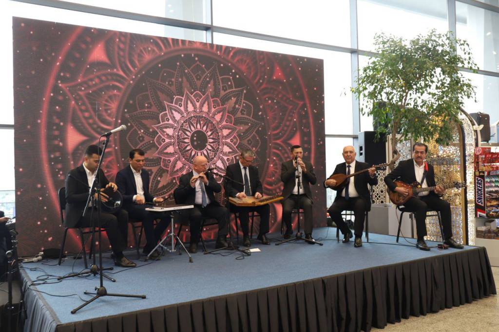 Тошкент халқаро аэропортининг учиб кетиш залида Ўзбек миллий мақом санъати маркази ва «Uzbekistan Airports» акциядорлик компанияси ҳамкорлигида мумтоз мақомга бағишланган мусиқий дастурлар ўтказилди.