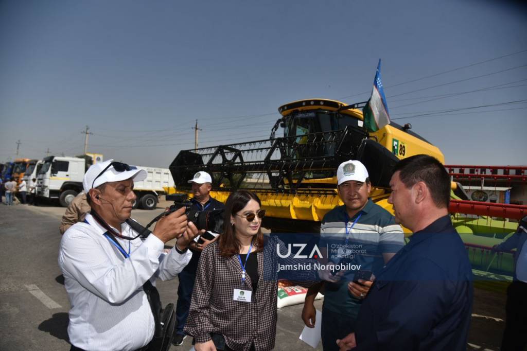 Пресс-тур доирасида иштирокчилар дастлаб “Ўздонмаҳсулот” акциядорлик компаниясига қарашли “Косон дон маҳсулотлари қабул қилиш” МЧЖ фаолияти билан танишди. Бу ерда туманда ғалла ўримида иштирок этадиган комбайнлар намойиши ўтказилди. Туман ҳокими ва вилоят сектор раҳбарлари иштирокида комбайнларнинг техник ҳолати кўздан кечирилди. Шунингдек, механизатор ва операторларга озиқ-овқат маҳсулотлари тарқатилиб, пул мукофотлари билан рағбатлантирилди.