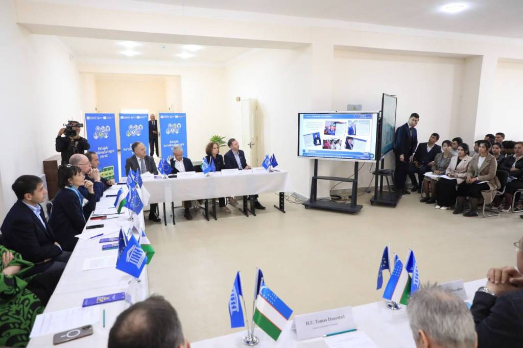 Европа Иттифоқи томонидан молиялаштирилаётган “Ўзбекистоннинг қишлоқ жойларида ишга жойлашиш кўникмаларини ривожлантириш” лойиҳаси доирасида ташкил этилган тадбирда қишлоқ ва сув хўжалиги каби мамлакат иқтисодиёти учун муҳим бўлган тармоқларда профессионал таълим тизимини замонавийлаштириш ва такомиллаштириш бўйича ҳамкорликда қилинган ишлар намойиш этилди.